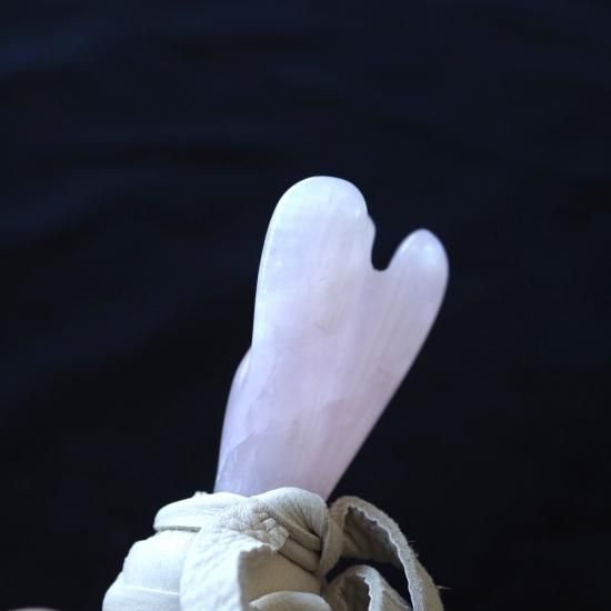 CW018 コッパーワンド ローズクォーツエンジェル & レムリアンシード アイボリー革ひも 275mm