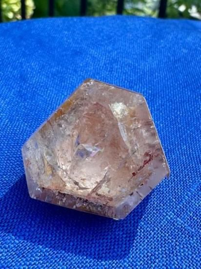底面から覗き込むと透明なエレスチャルの中に小さな虹がキラキラ輝いています。